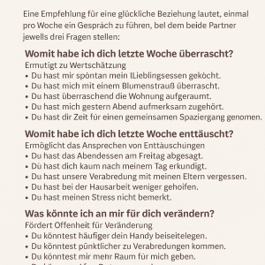 परिचय: 3 सवालों के साथ साप्ताहिक जोड़ी संवाद का सिद्धांत: “मैंने तुम्हें किस बात से चौंका दिया?” “मैंने तुम्हें किस बात से निराश किया?” “मैं...